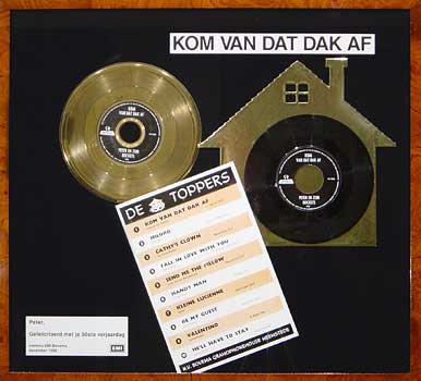 | Peter Koelewijn Kom van dat dak af Single. Platina award van EMI voor totale verkoop vanaf 1960 |