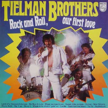 | LP Peter Koelewijn zag eind jaren vijftig de Nederlandse Tielman Brothers voor de eerste keer spelen in zaal Astoria (later omgedoopt tot Plaza) in Eindhoven. Hij zat nog op de middelbare school en nam zijn huiswerk mee naar het optreden van de toen legendarische Indo band. De Brothers maakten diverse platen en toerden vooral in Duitsland. Ze speelden de rock & roll hits van die tijd en hun instrumentarium was ongekend: alles was in het wit. De bassist speelde op een electrische bas, wat Koelewijn nog nooit had gezien en zanger/gitarist Andy had een Amerikaanse gitaar, die in Europa nergens te koop was. Peter heeft nooit zijn bewondering voor die lichting van de Tielman Brothers onder stoelen of banken gestoken. “De boys waren ongelooflijk populair”,wist hij later te vertellen. “Ze hadden de meiden voor het uitzoeken. De bühne van die zaal was nog omringd door ouderwetse coulissen. In de pauzes zag je vaak een paar meisjes achter het toneel verdwijnen en dan gingen de coulissen even later flink op en neer”. In 1976 werd de Eindhovense artiest/producer/songwriter gebeld door Andy Tielman. “Peter, jij bent altijd een fan van ons geweest, heb ik gelezen, dus wil ik dat je een plaat met ons maakt. Ik heb een heleboel eigen liedjes klaar”. Koelewijn was aangenaam verrast maar antwoordde: “Ik vind het fantastisch een plaat met jullie te maken, maar niet met je liedjes. Ik wil alleen een LP met de pure rock and roll songs die ik toen gehoord heb”. Besloten werd om hoofdzakelijk gebruik te maken van studiomuzikanten omdat de groep van Andy nogal eens van samenstelling wisselde en dat zou de opnames maar ophouden. Met o.a. Jan Rietman (Long Tall Ernie & the Shakers), Bonkie Bongaerts (Mr. Albert Show en Bots), Frans Meyer (Peter & Rockets) en Albert Hol (Bonnie St. Claire & Unit Gloria) trok men de Phonogram studio in om rock-classics als “Move it”, “Mean woman blues”, “Sweet little sixteen”, “Donna”, “Lucille” en “Summertime blues” op te nemen. Peter Koelewijn wilde iets extra´s toevoegen en had daarom Jan Akkerman gevraagd de gitaarsolo´s te spelen. Jan was net in een Engels popblad uitgeroepen tot gitarist van het jaar en had een paar succesvolle jaren achter de rug met Focus. Hij zou inspelen op de tapes. “Laat maar komen”, zei hij in de studio opgewekt tegen Peter en die startte het eerste nummer. Maar dat viel goed tegen want hoewel Jan´s roots in de rock and roll lagen (Peter Koelewijn had hem al in 1960 als jochie zien schitteren met zijn band "Johnny and his Cellar Rockers" in het voorprogramma van Peter en zijn Rockets), hadden de jaren Focus van hem een fantastische gitarist gemaakt, maar was hij de simpele rock and roll licks vergeten. Na een uur ploeteren maakte Peter er een eind aan. “Je bent gewoon veel te goed, veel te technisch geworden voor deze muziek”, zuchtte hij met spijt in zijn stem. “Ik moet iets anders bedenken”. Jan zei niets, maar toen hij bij de deur stond, draaide hij zich om en vroeg “kan ik het volgende week nog een keer proberen?” Peter voelde dat Jan zich behoorlijk klote voelde en dat hij op revanch uit was. “Natuurlijk”, antwoordde hij. Een week later speelde Jan Akkerman alle nummers achter elkaar feilloos in. Waarschijnlijk had hij naar een paar rock and roll platen geluisterd die hij ongetwijfeld nog in zijn kast had liggen. Hij klonk als de beste gitarist van de wereld die rock & roll speelde. |