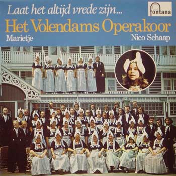 | Toen Marietje Kwakman uit Volendam nog een klein meisje was, nam Peter Koelewijn met haar het liedje “Laat het altijd vrede zijn” op. Voor die opname kon de producer een beroep doen op het beroemde Volendams Operakoor. Het werd een succesje en naar aanleiding daarvan besloot Peter een LP te maken met het koor. Eind 1974 nam hij, met arrangeur Job Maarse, de plaat op in de St. Vincentiuskerk in Volendam. Het koor stond onder leiding van Reinhardt van Randwijk en gasten waren, natuurlijk, Marietje maar ook zanger Nico Schaap. | ||||